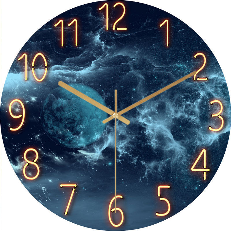 12-inch Wall Clock For Home Decoration Blue Moon Sound Control Luminous Simple Modern Mute Home Gothic Room Decor